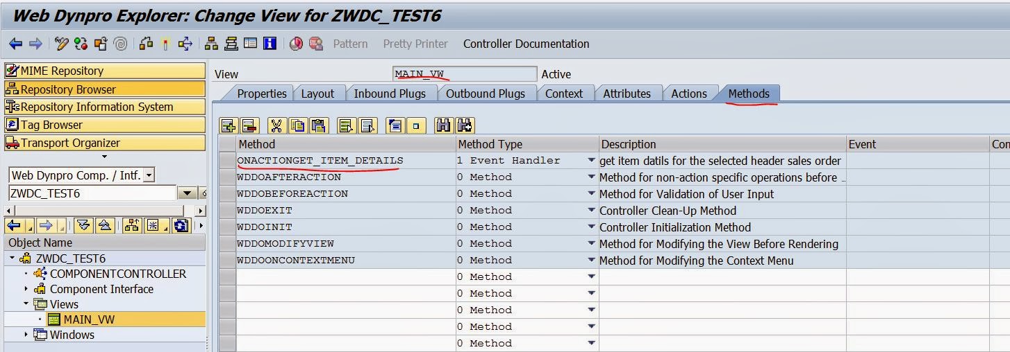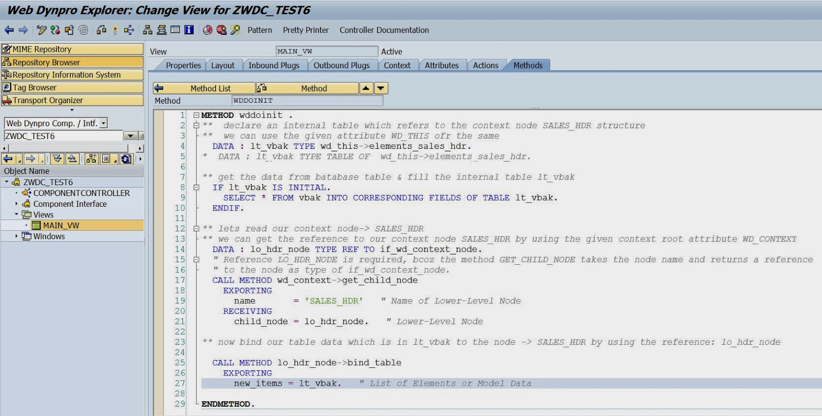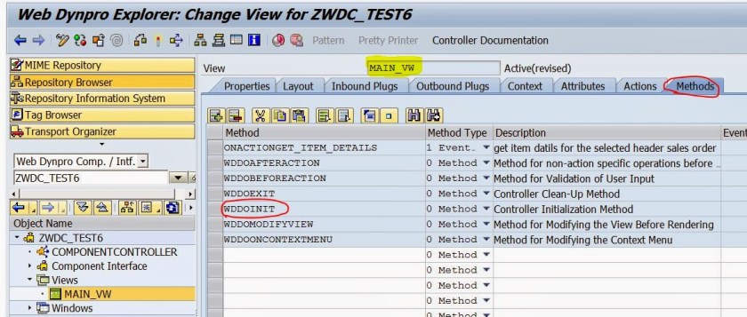 Step31. Go to the methods tab and double click on the WDDOINIT method which will fill the header table.