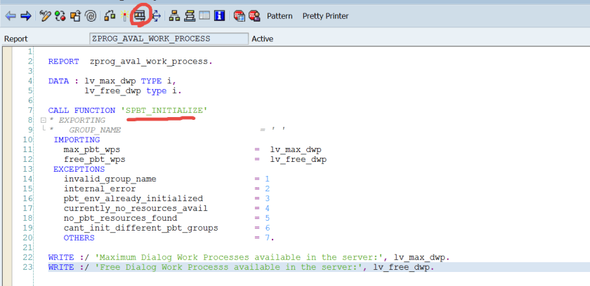WRITE :/ ‘Maximum Dialog Work Processes available in the server:’, lv_max_dwp.