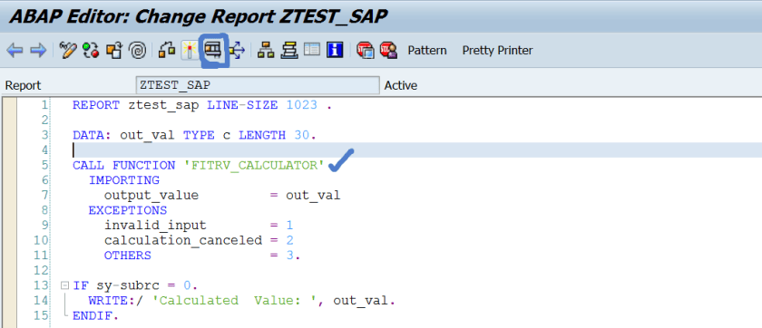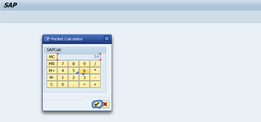 Calling Calculator in ABAP Program November 22, 2015 coderobbot Uncategorized Leave a comment Step1. Call the FM : FITRV_CALCULATOR to open up the calculator in program. Step2. User can do any operation . Step3. At last select the continue button. Step4. The output/final value of the calculator is displayed in the program list. Rate this: Share on X (Opens in new window) X Share on Facebook (Opens in new window) Facebook Share on LinkedIn (Opens in new window) LinkedIn Share on WhatsApp (Opens in new window) WhatsApp Like Loading... Related