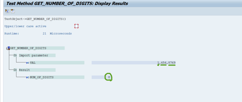 Execute the method GET_NUMBER_OF_DIGITS which returns the number of DIGITS in a floating point number.