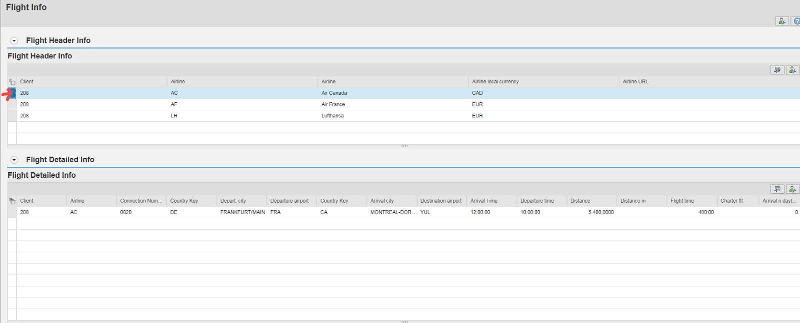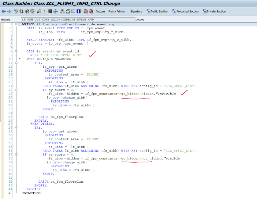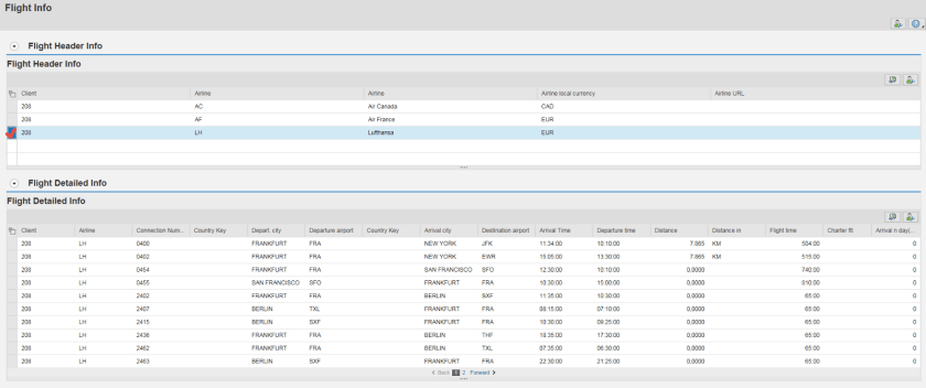 Very first screen is loaded, the first line is made selected and an event ‘SET_SPFLI_LIST’ is raised which is handled in the ITEM list feeder class.
