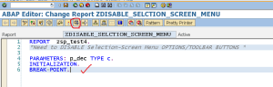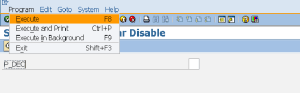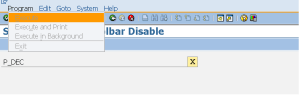 Step3. Here are the menu options available in the standard selection screen with application toll bar and function key buttons. Some times it might be require for some report program that needs to be executed only in the background mode not in foreground, so at that time we need to disable the execute button from the selection-screen.