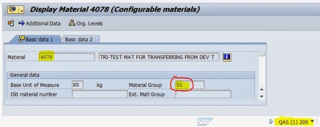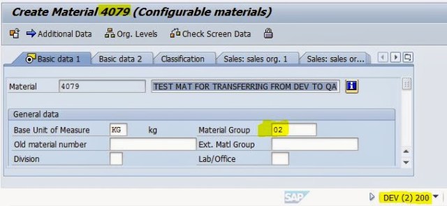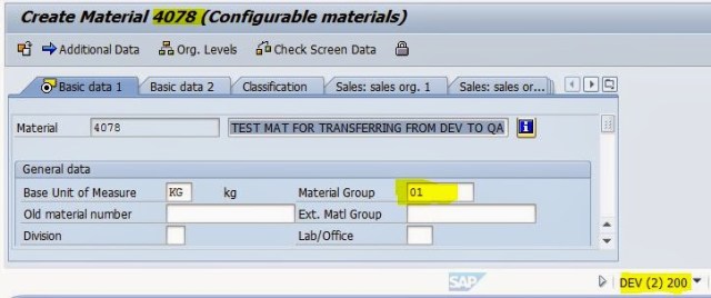 Step44. Provide the material number 4078 and click on Enter button. So the material is available in the destination system with Material group – 01.