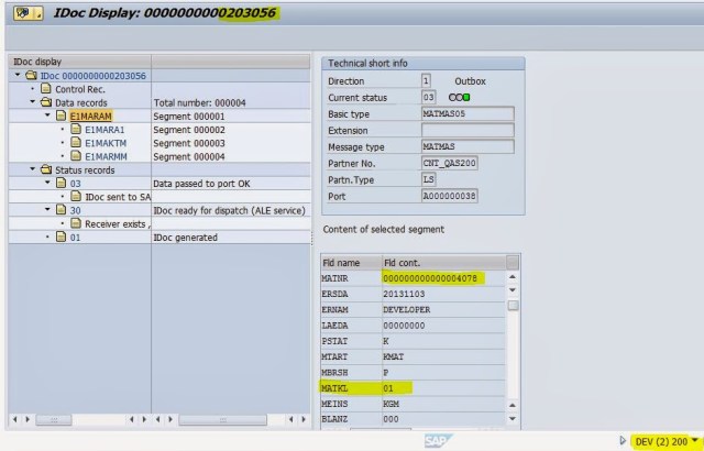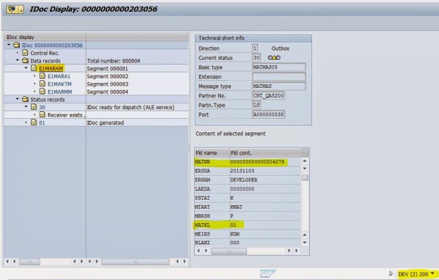 Step24. But only one communication IDoc is generated due to the filter object for the material group.