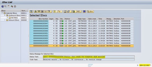Step27. Due to the Collective mode set up in the partner profile the IDoc is set with status 30. Double click on the Line.