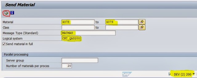 Step22. Provide the Material numbers, message type, logical system and click on F8 button.
