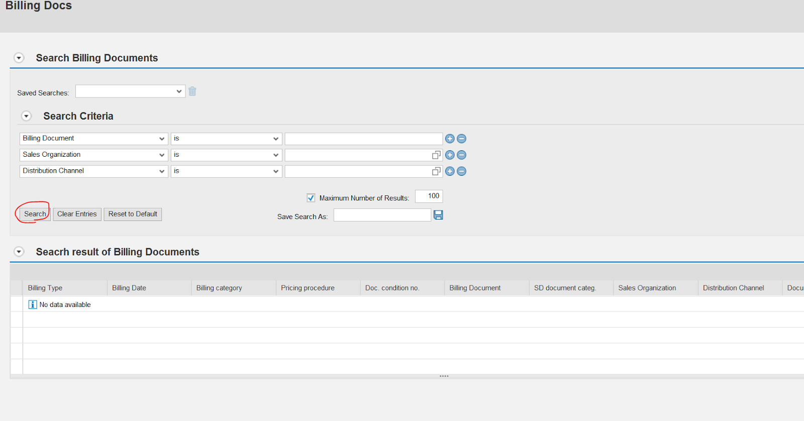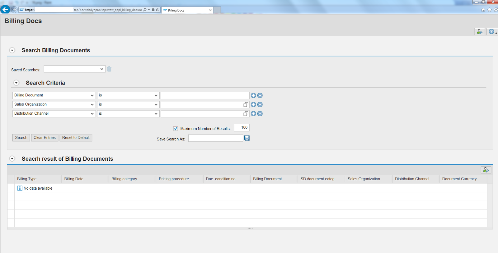 Step77. So here the needed screen appeared. But if you provide some search criteria and click on the search button, nothing would be displayed. The search button is a standard button on click it triggers an  event.