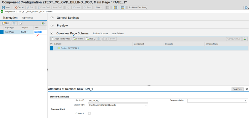 Step48. Under Overview Page Schema: Select the Section: SECTION_1.