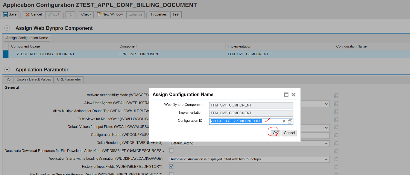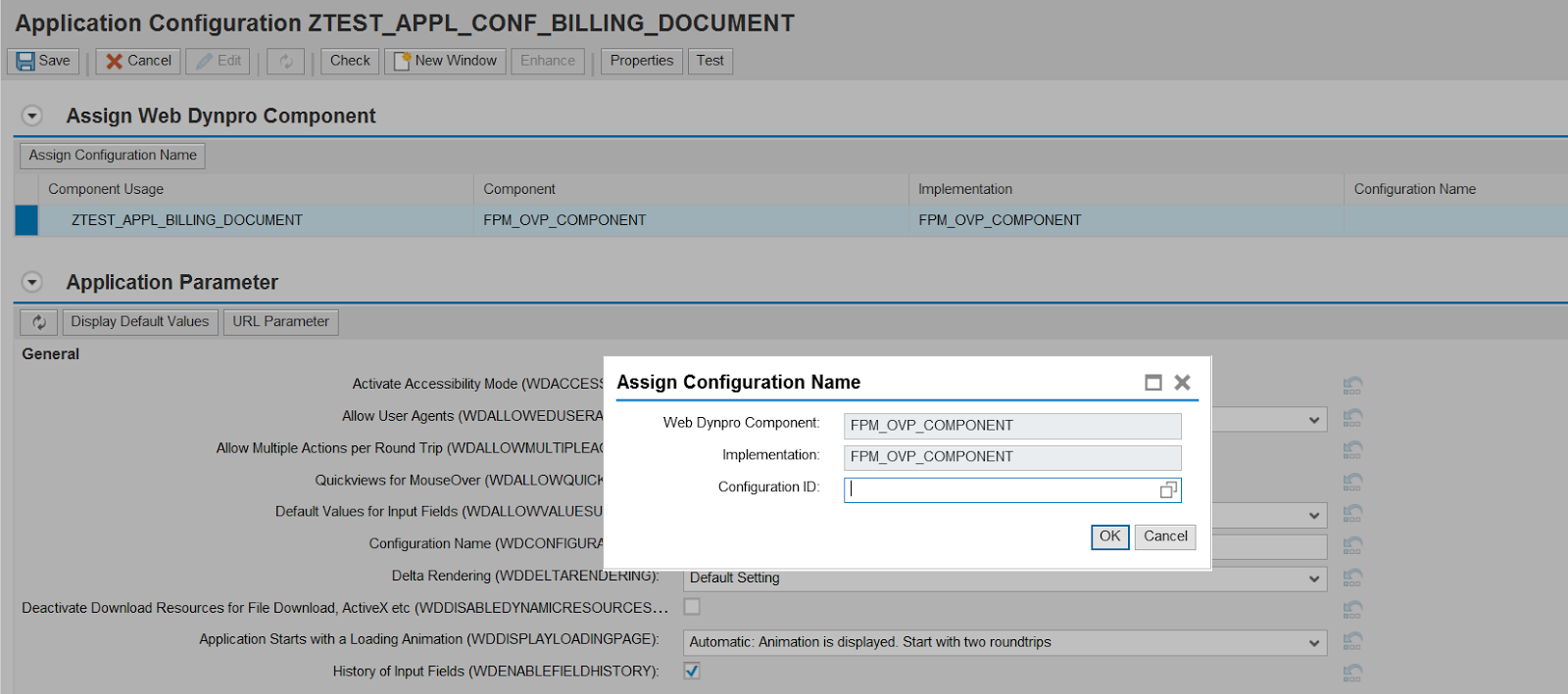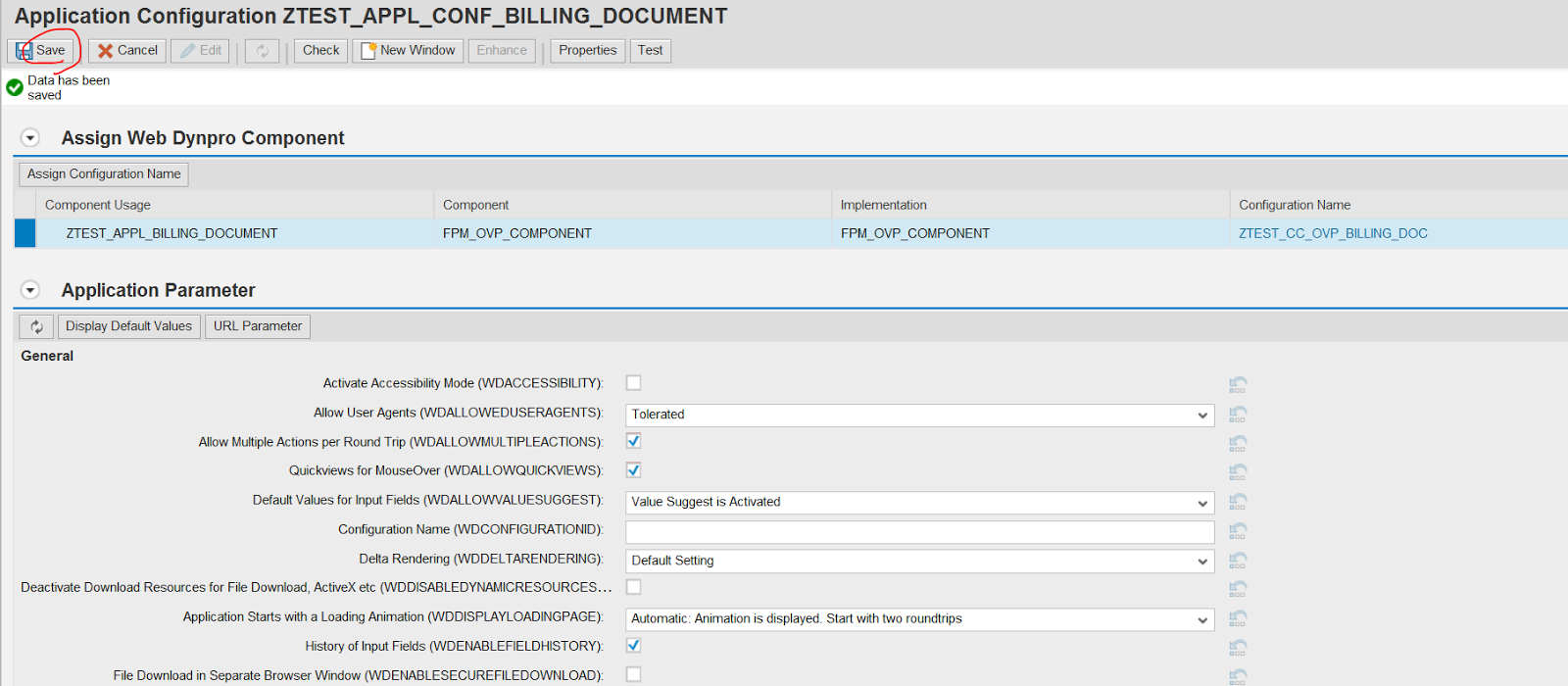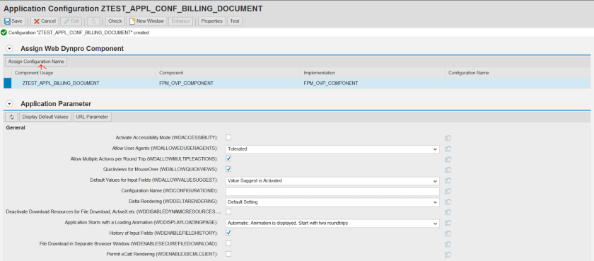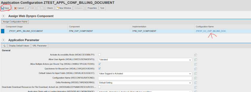Step76. In SE80, open the pre step created application configuration and click on the test button.