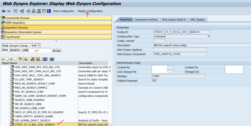 Step23. Go to SE80, Open FPM_SEARCH_UIBB, Go to our previously created Component configuration. Double click on the Component Configuration and click on the Display Configuration.