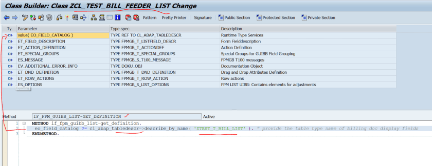Step29. Now let’s configure the List Display part. Go to the feeder class and open the method GET_DEFINITION. Provide the below code and activate the method.