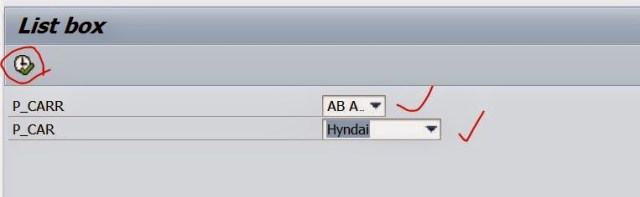 Step5. Execute the program. For the first fields the values are coming from the DB table by the help of search help associated with the reference field and displayed in the form of drop down values.