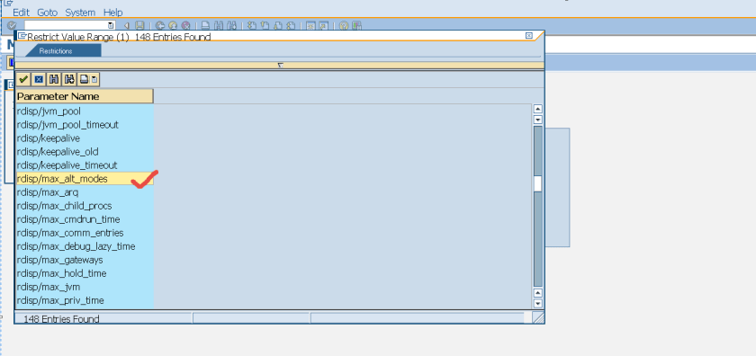 Step2. Provide param. name as – rdsip/* and press F4 button.