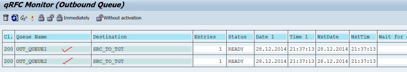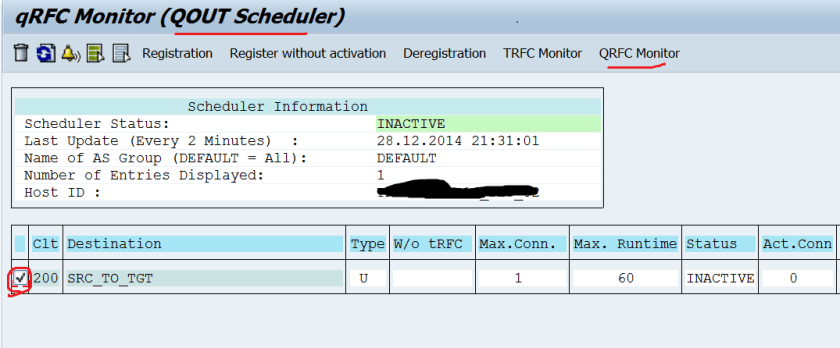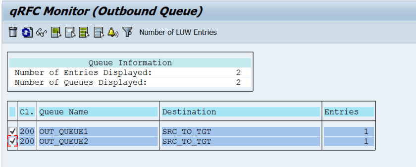 Step1. Source System: Tx- SMQR( out bound scheduler). Select the line and click on the qRFC Monitor button.