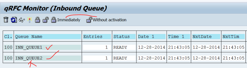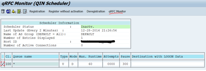 Step5. Target System: Tx- SMQS( Inbound Scheduler): Select the line and click on the qRFC monitor button.