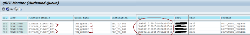 Step4. Source System: So here we have a single TID for all the FM calls that belongs to two different Queues. process the out bound queue.