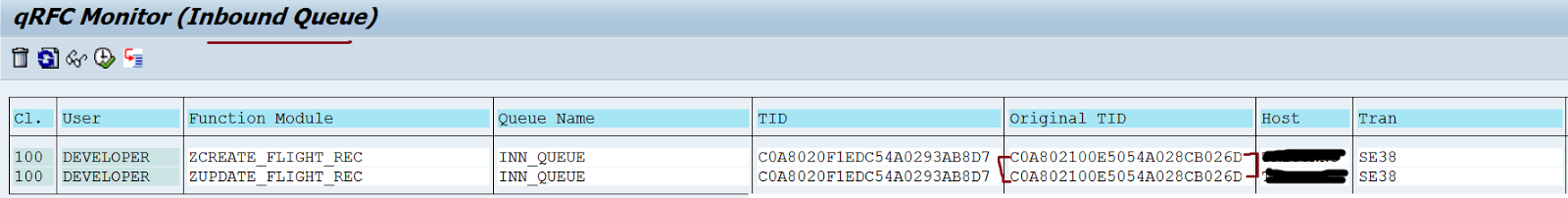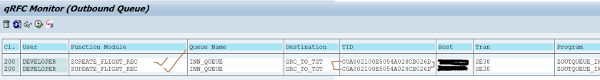 Step3. Source system: Tx- SMQR( out bound scheduler) – One TID(one luw) fro two RFC FM calls in a single out bound queue.