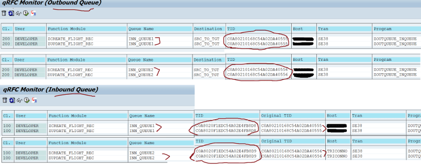 Step6. Target System: Tx- SMQS( Inbound Scheduler). The snap shot of comparison of the TIDs.