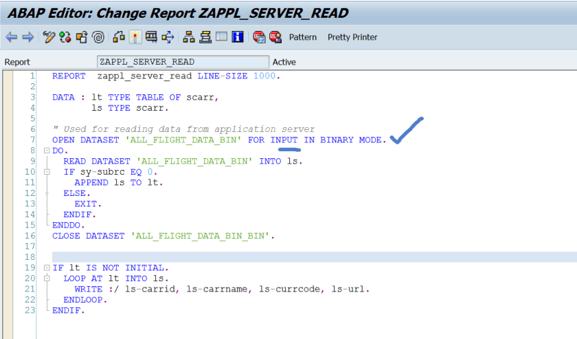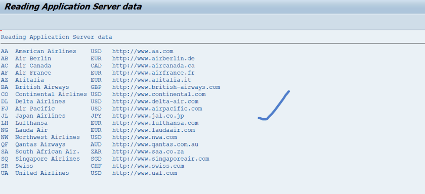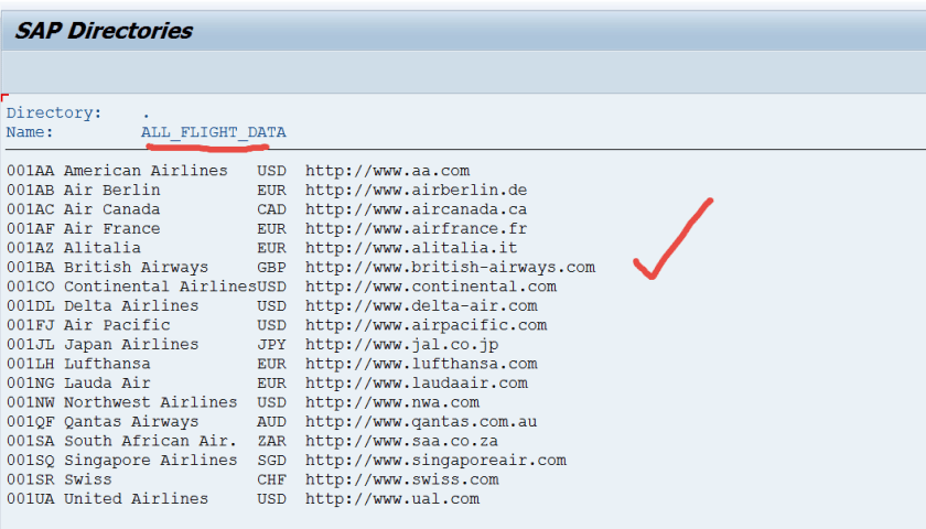 Step5. Execute the report which reads the file : ALL_FLIGHT_DATA and puts it in an internal table and then displays it.