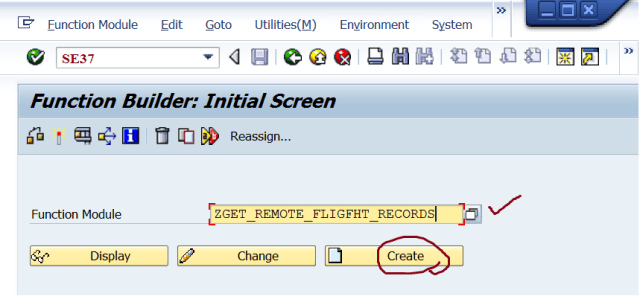 Step7. Go to Tcode- SE37 of the target system, provide the FM name and click on create button.