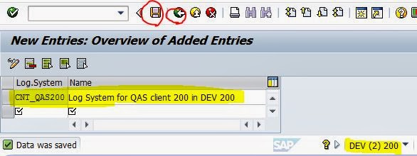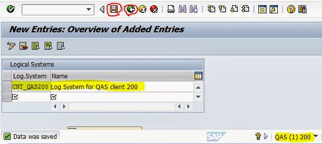 Step4. Provide another logical system name : CNT_QAS200 and save it.