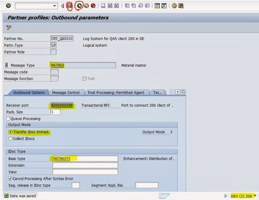 Step33. Now the message MATMAS appears in the outbound parameters section.