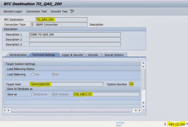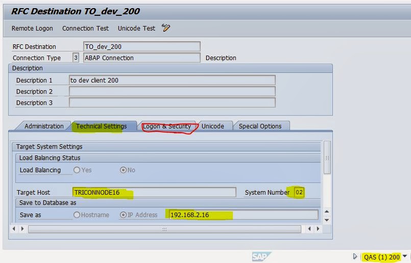 Step14. Create a RFC Destination ‘TO_QAS_200’ with details.