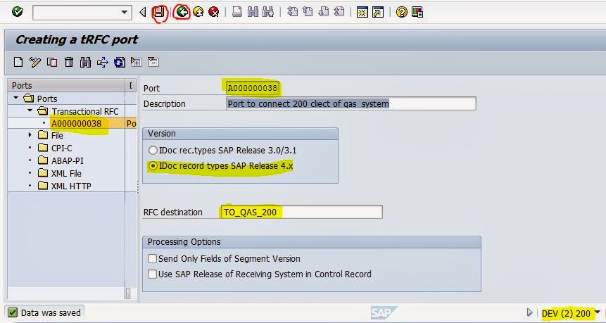 Step28. The system automatically creates a port. provide the description and assign the above created RFC destination and save it.