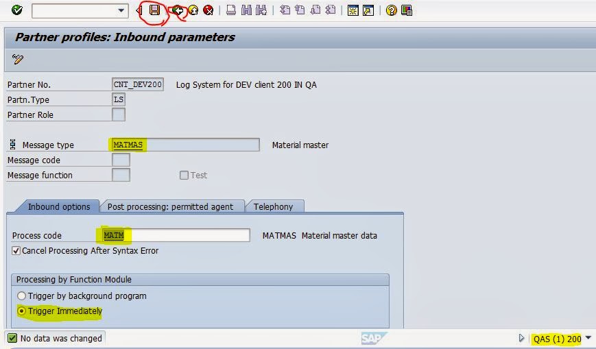 Step52. Provide message type as ‘MATMAS’ and processing code as ‘MATM’. Save it and click on the Back button.