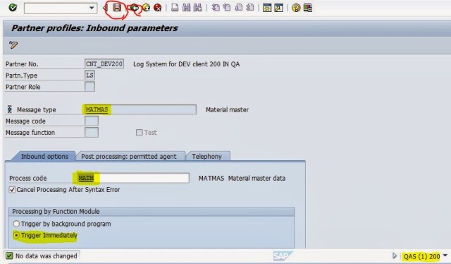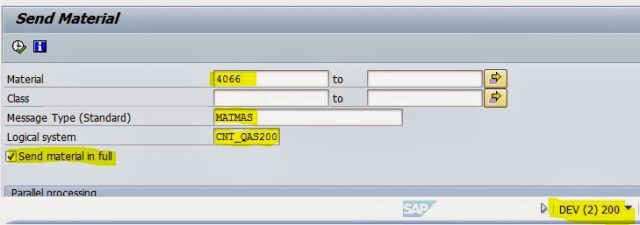 Step59. Provide the material number: 4066, message type as ‘MATMAS’ and select the logical system as ‘CNT_QAS200’ and execute the program.