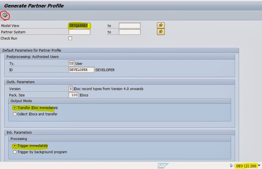 Step68. Provide the partner System name ‘CNT_DEV200’ and execute it.