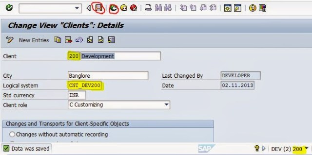 Step12. Provide logical system name : CNT_DEV200 and save it.
