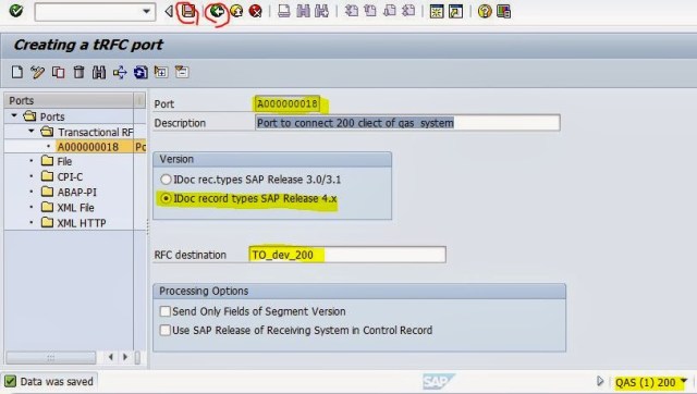 Step20. The system automatically creates a port. provide the description and assign the above created RFC destination and save it.