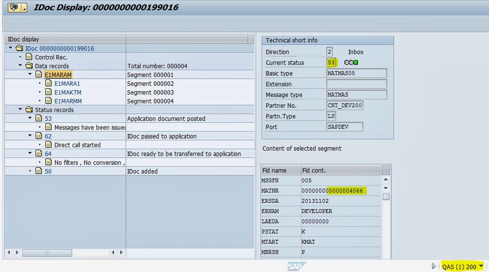 Step53. Now the message type ‘MATMAS’ appears in the Inbound section.
