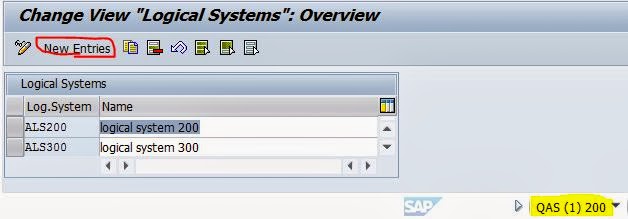 Step9. Go to the destination system QAS with client 200. Go to the Tcode- BD54 to create logical system.