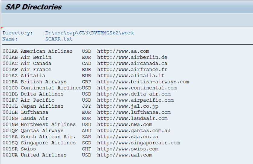 Step6. Go to Tx- AL11, open directory: DIR_HOME and double click on the file SCARR.TXT.