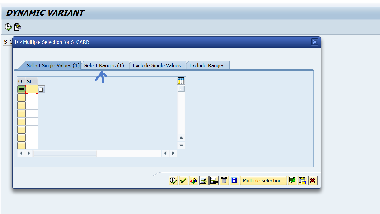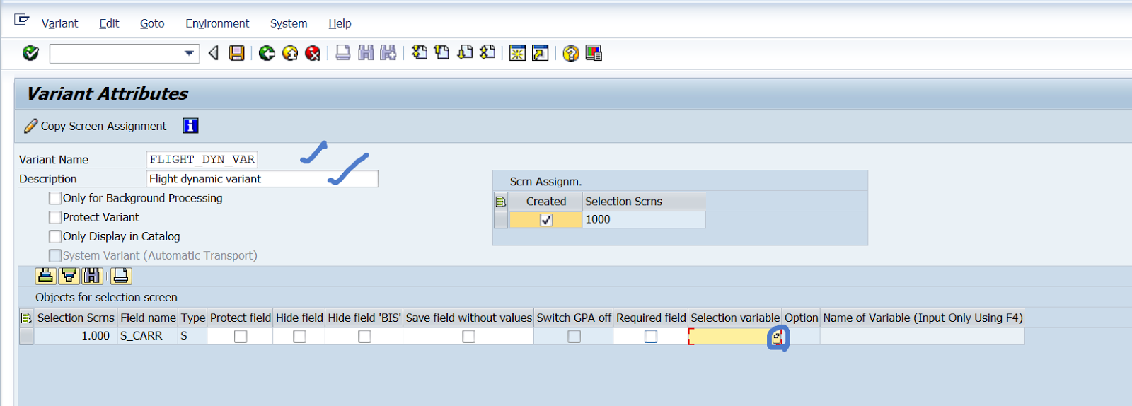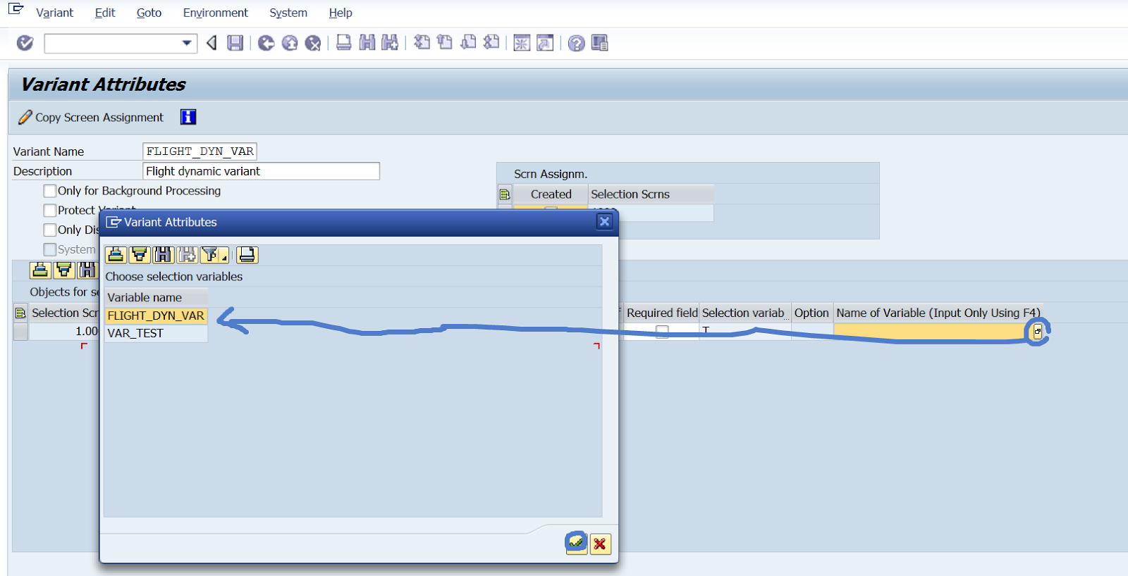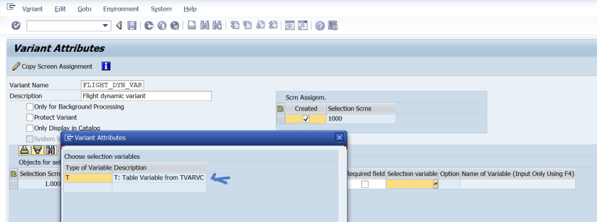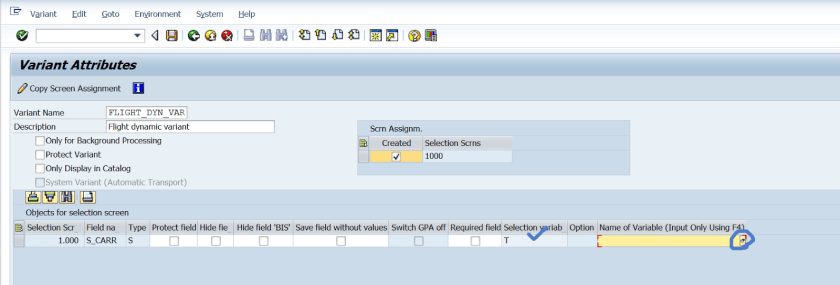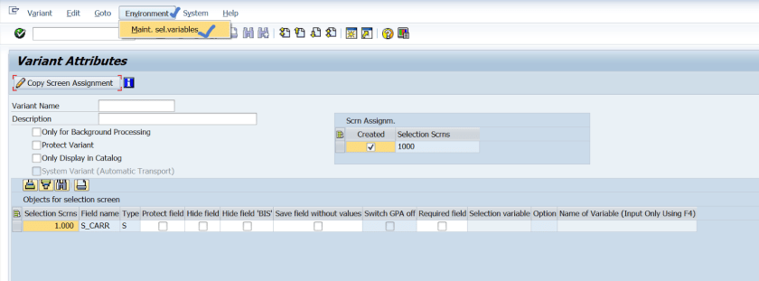 Step15. The below screen appears, Provide the variant name, description and press F4 button of the selection variable.