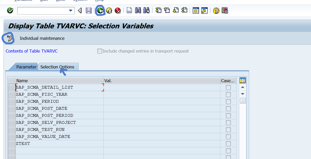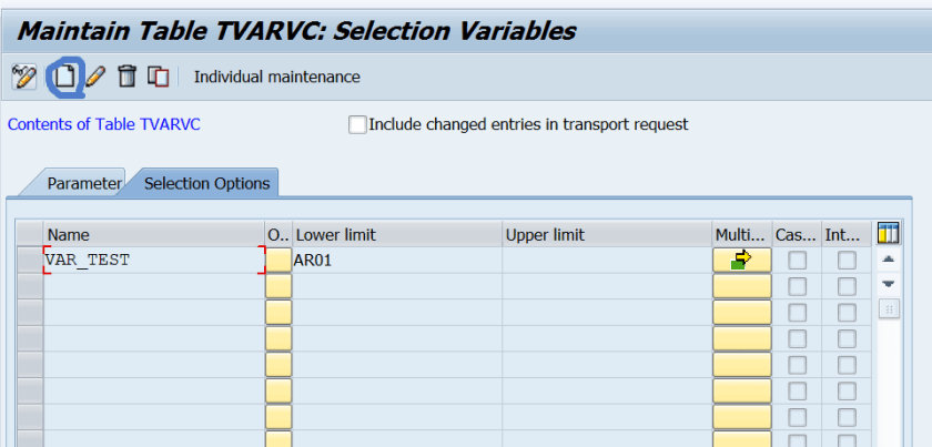 Step30. This will open the Tx- STVARV screen. here we can maintain the names and values and can create a report variant using that STVARV value.