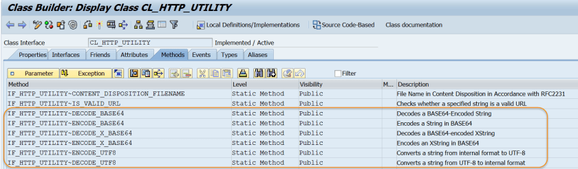 CALL METHOD cl_http_utility=>if_http_utility~encode_base64 EXPORTING unencoded = p_string ” Unencoded String RECEIVING encoded = lv_encode_str. ” BASE64-Encoded String