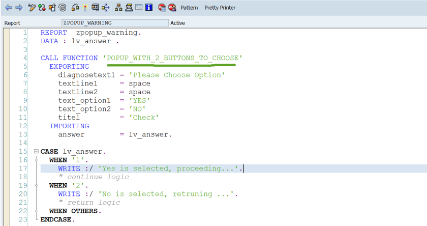 CALL FUNCTION ‘POPUP_WITH_2_BUTTONS_TO_CHOOSE’