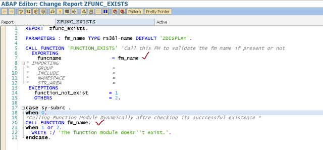 Step7. In order to validate the FM which is called dynamically one standard Fm is there which can be called before actually calling the FM dynamically.