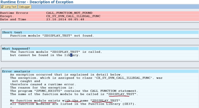 Step6. So we receive a dump while calling the FM dynamically.