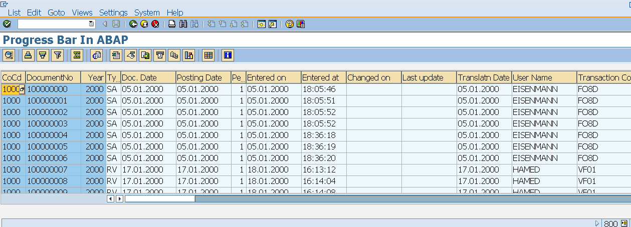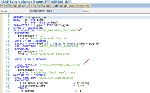 In some cases while displaying the O/P of any reports, if the record volume is very high or the report looks into multiple tables to gather the information it takes some time lets say 12 to 15 secs to display the ALV. The user provides the Selection criteria and executes the report. Now the use waits 12 secs after which the result is displayed. So in such a case we can use the status bar indicator to keep informing the user what is happening within the program and how much % the program finished to display the output. In such case status bar progress indicator plays important role by informing the user about the program completion state. The below post show one of the implementation case.