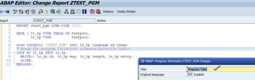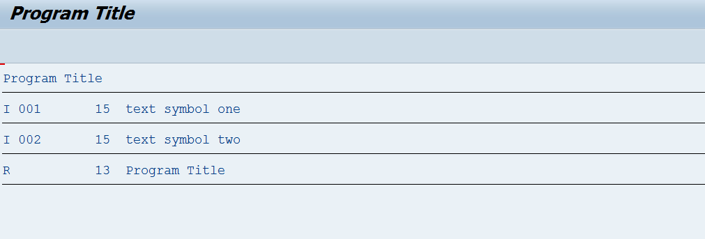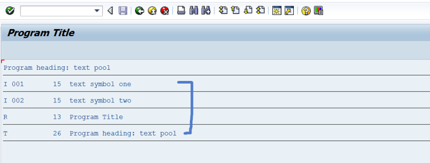 Step7. The READ TEXTPOOL statements reads all these and displays as below.