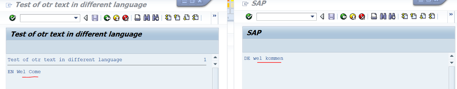 Step6. So automatically the alias name got changed. So we created an OTR text with english lang . Now we need to maintain the text in DE(german language).