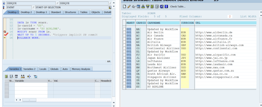 Step1. Here is a program which inserts a record in the table and waits for 5 seconds and then tries to do a roll back. But as the wait statement itself performs the commit work before the roll back the record can’t be taken our with the roll back statement.