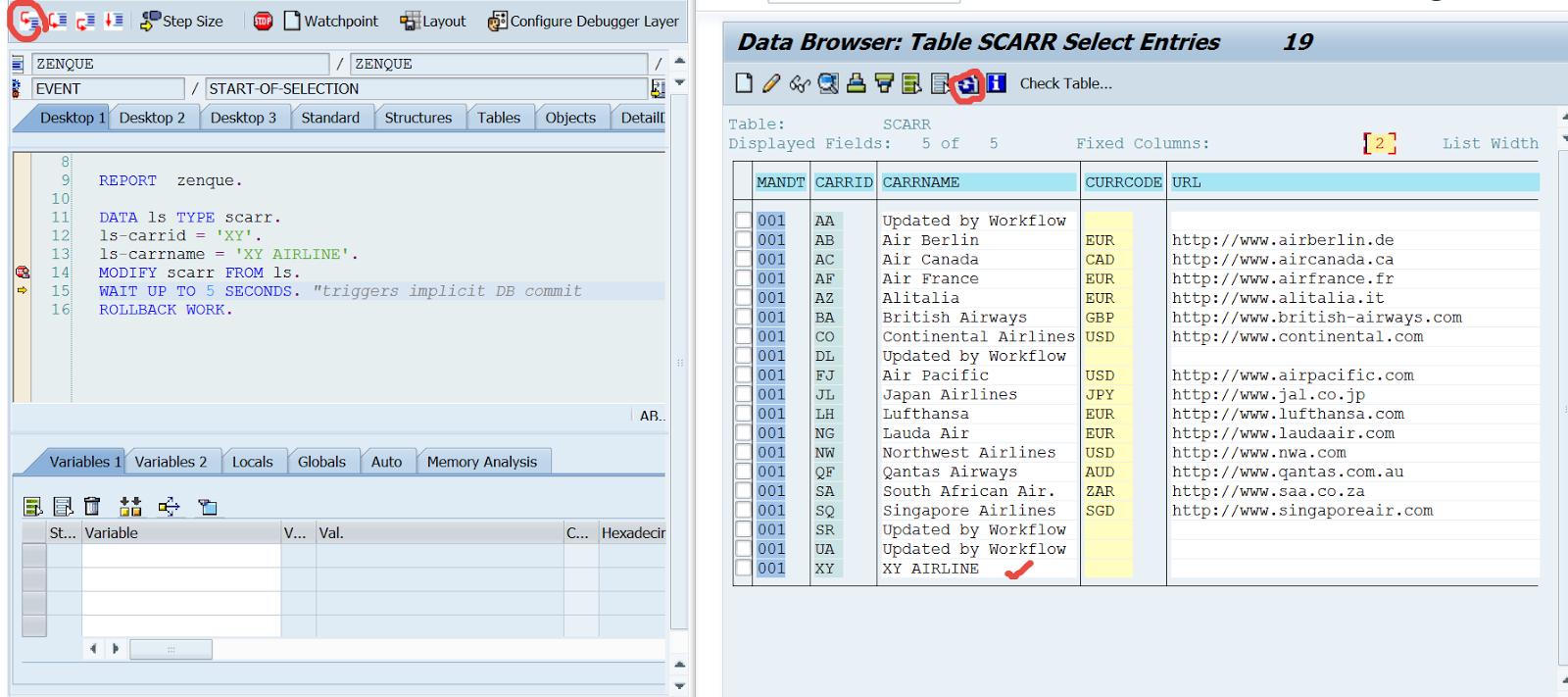 Step1. Here is a program which inserts a record in the table and waits for 5 seconds and then tries to do a roll back. But as the wait statement itself performs the commit work before the roll back the record can’t be taken our with the roll back statement.