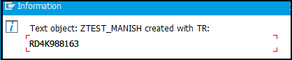 MESSAGE i398(00) WITH 'Text object: ' _text_obj_name 'created with TR:' _request_header-trkorr.