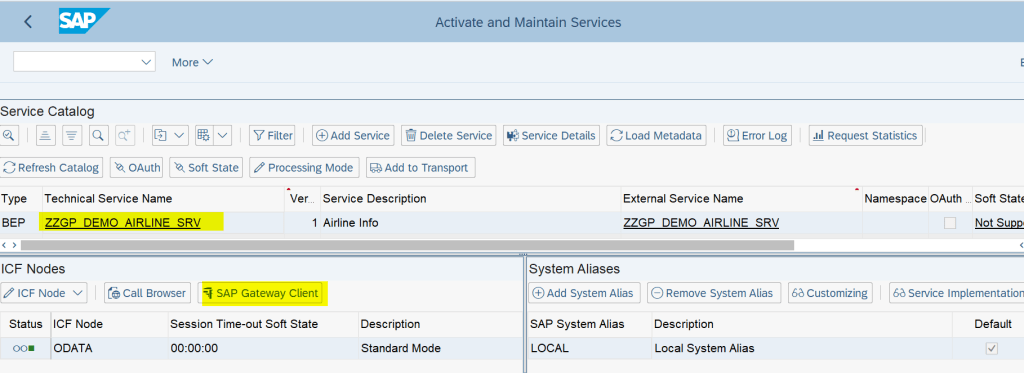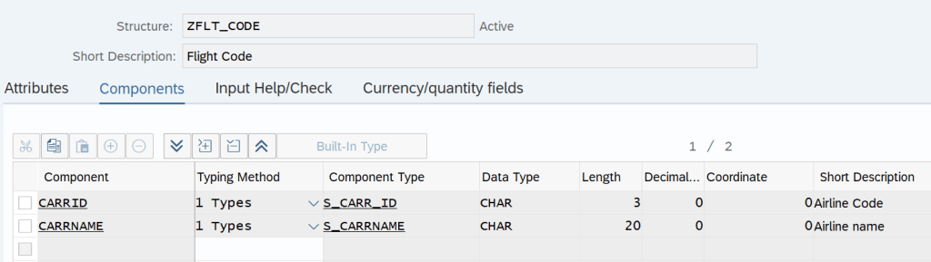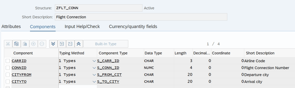 The usual flight demo data is used. Below are 2 DDIC structures are created to design our gateway project data model.