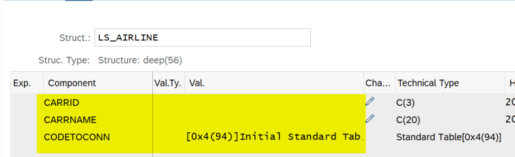Below LS_AIRLINE is a deep structure with header and item as a table. The item table name should be the ABAP name of the navigation ‘CODETOCONN’.